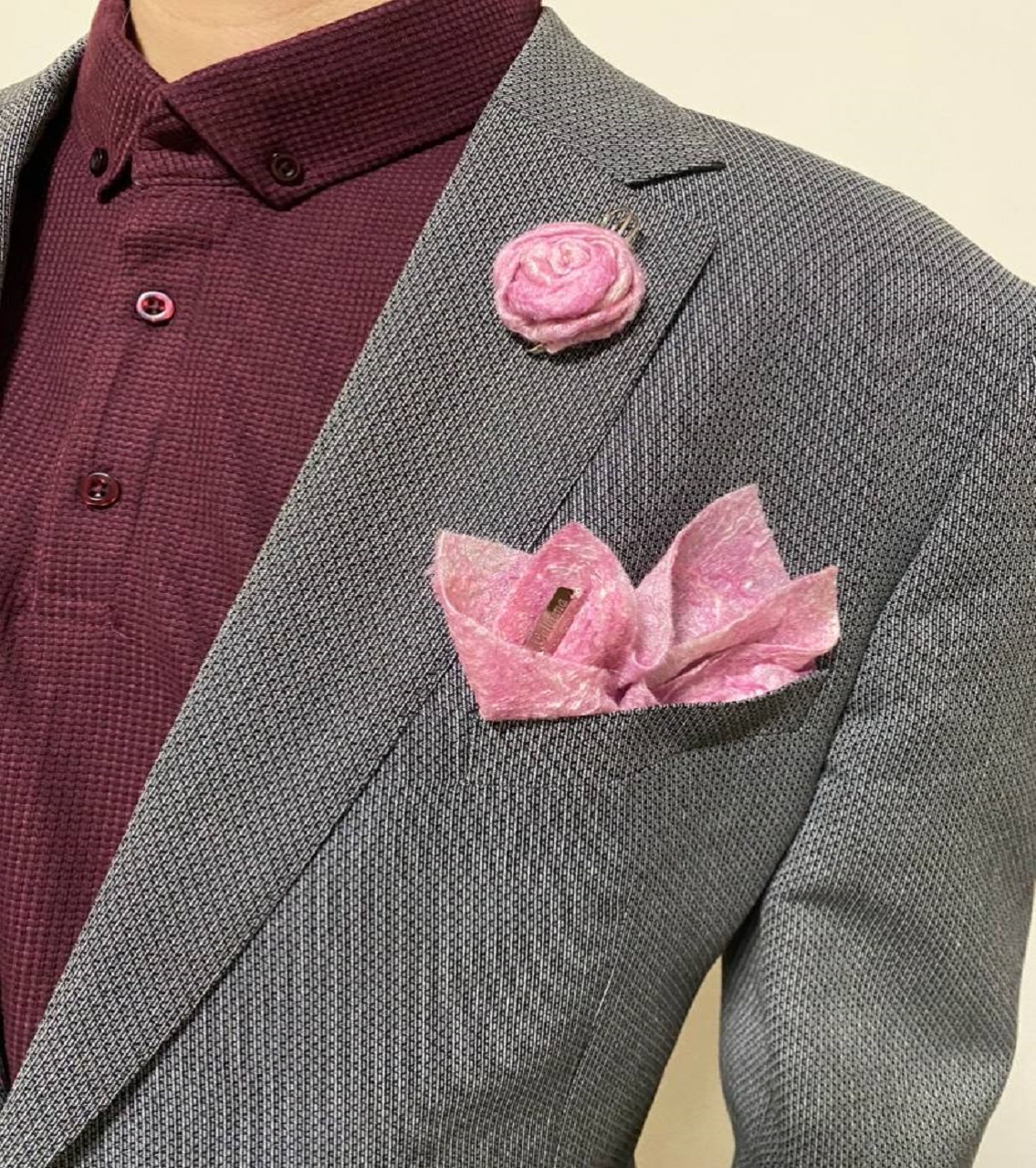HomeMan Pasha handkerchief + brooch “Pink tenderness”